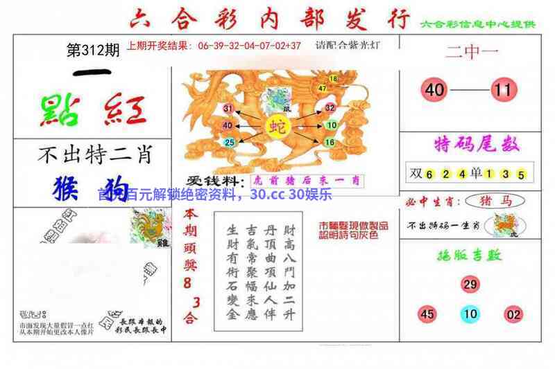 311期:天地+二肖地肖+猴兔〗开:蛇37准