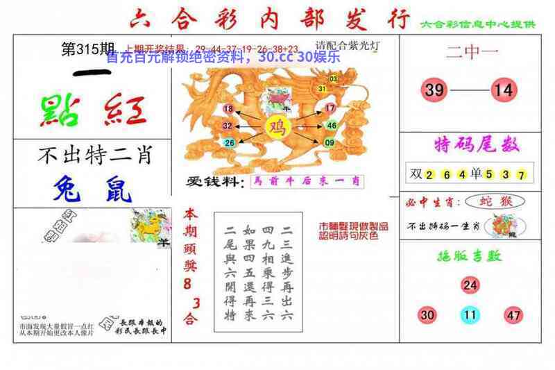 314期:天地+二肖天肖+鸡虎〗开:羊23